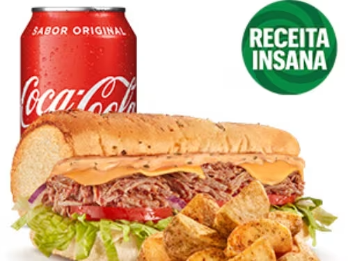 Experimente a exclusiva Receita Insana: sanduíche com Pão (a sua escolha), Carne Bovina Desfiada, Queijo Cheddar Fatiado, Alface, Tomate, Cebola Roxa, Molho Chiplote (levemente picante). Escolha o tamanho: 15cm ou Footlong (30cm).